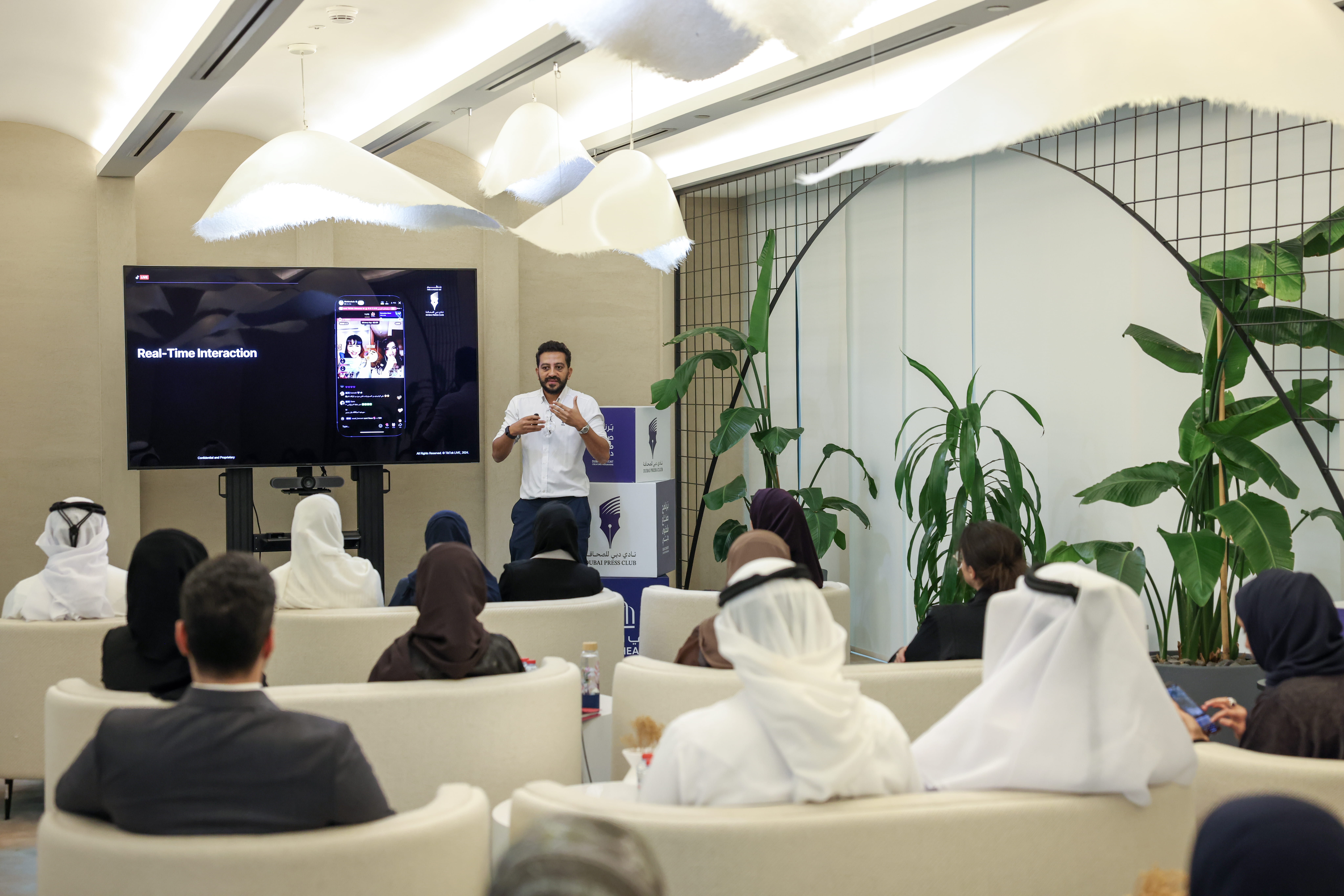 وقدّم محمد عنبة خلال حديثة نظرة عامة على الخصائص الأساسية للبث المباشر، وأهمية استيعاب صانع المحتوى لتلك الخصائص، كما وجّه مجموعة من النصائح المهمة المتعلّقة بصناعة المحتوى المرئي، على صعيد تجهيزات الإضاءة والصوت، كما تطرّق إلى الأدوات المفيدة لصانع المحتوى Studio LIVE، كذلك قدّم مدير الشراكات الاستراتيجية للبث المباشر في "تيك توك"، باقة من النصائح العملية للمبدعين الجدد والمتعلقة بمسألة إعداد المحتوى.