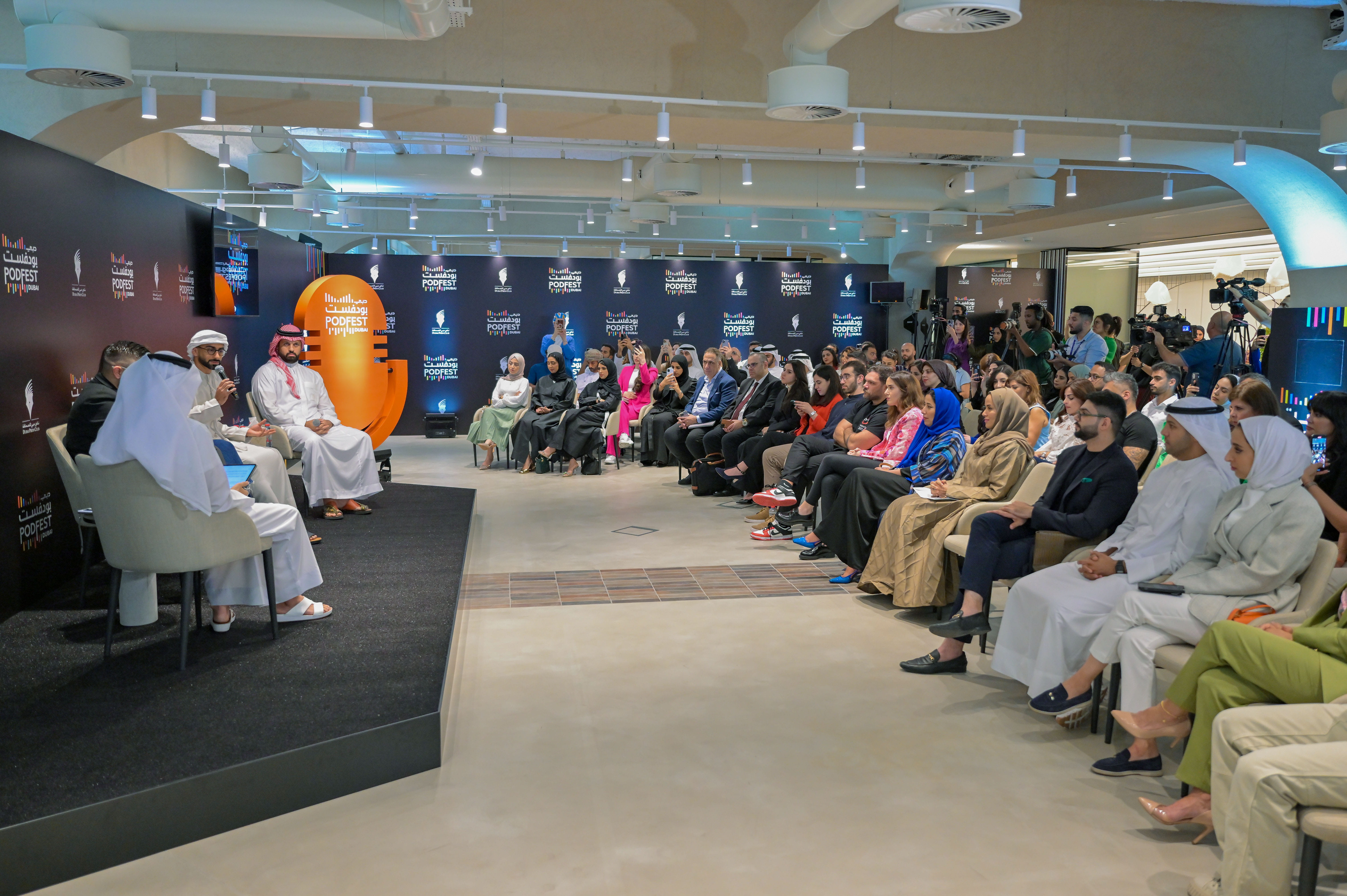 ضمن فعاليات النسخة الثالثة من "دبي بودفست"، الذي أُقيم اليوم (الثلاثاء) برعاية سمو الشيخ أحمد بن محمد بن راشد آل مكتوم، النائب الثاني لحاكم دبي رئيس مجلس دبي للإعلام ، ونظّمه "نادي دبي للصحافة"، سلَّط الحدث، الذي شهد مشاركة نخبة من أبرز صُنّاع "البودكاست" والمحتوى الصوتي العربي، الضوء على عدد من التجارب العربية المتميزة في مجال صناعة البودكاست، من خلال جلسة بعنوان "قصص ملهمة" وتحدث خلالها مجموعة من صُنّاع المحتوى الصوتي العربي عن تجاربهم ورؤاهم حول عالم البودكاست.