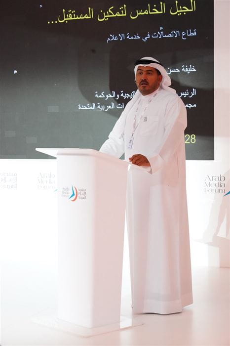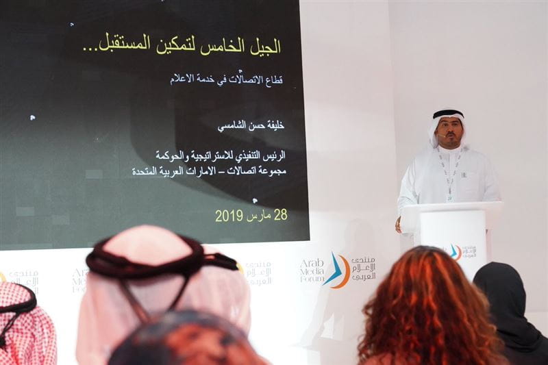 ضمن فعاليات اليوم الثاني لمنتدى الإعلام العربي تحدث خليفة الشامسي، الرئيس التنفيذي للاستراتيجية والحوكمة المؤسسية في اتصالات، امام ضيوف ومشاركي الدورة الثامنة عشرة للمنتدى، عن السباق المتسارع نحو تطوير شبكات الجيل الخامس من شبكات الاتصال، والتي ستأتي خلفاً لشبكات الجيل الثالث والرابع الحالية، وتأثيرها الإيجابي على كافة القطاعات الحوية بما فيها قطاع الإعلام الذي سيتأثر بشكل مباشر بهذه التقنيات وسيساهم بتقديم الخدمات الإعلامية بصورة مختلفة كلياً.