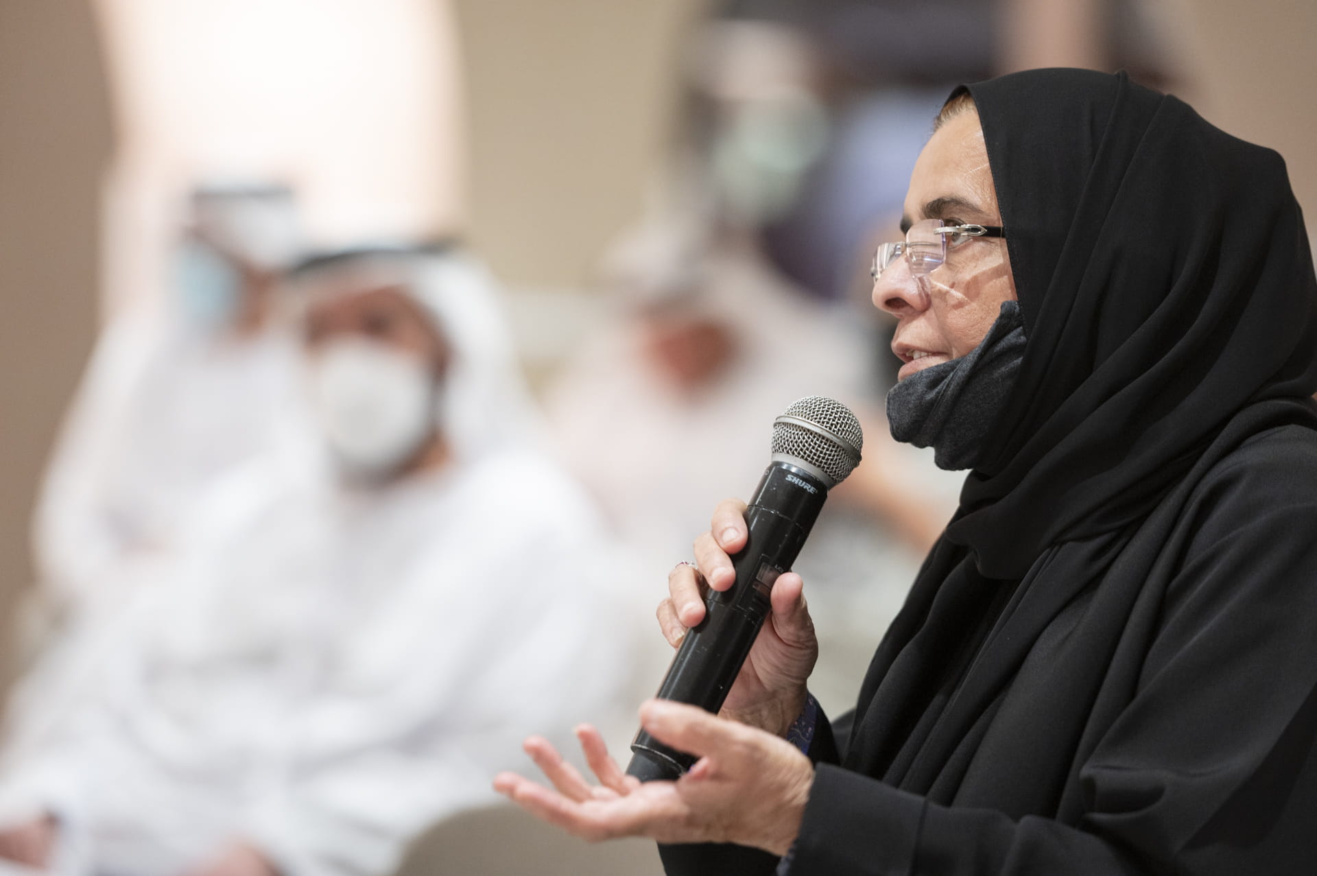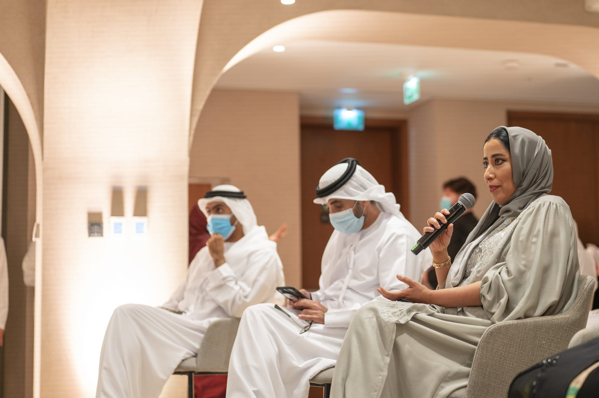 Speakers who participated in the discussion included Mohammed Jalal Al Raisi, Executive Director of the Emirates News Agency, WAM; Sami Al Reyami, Editor-in-Chief of Emarat Al Youm; Mohamed Al-Hammadi; Mona Bu Samra; and Mansour Al Mansouri, Former Director General of the National Media Council. The session was moderated by Majed Al Farisi from Sky News Arabia and Sharjah TV hostess Reem Saif Al Mamari.