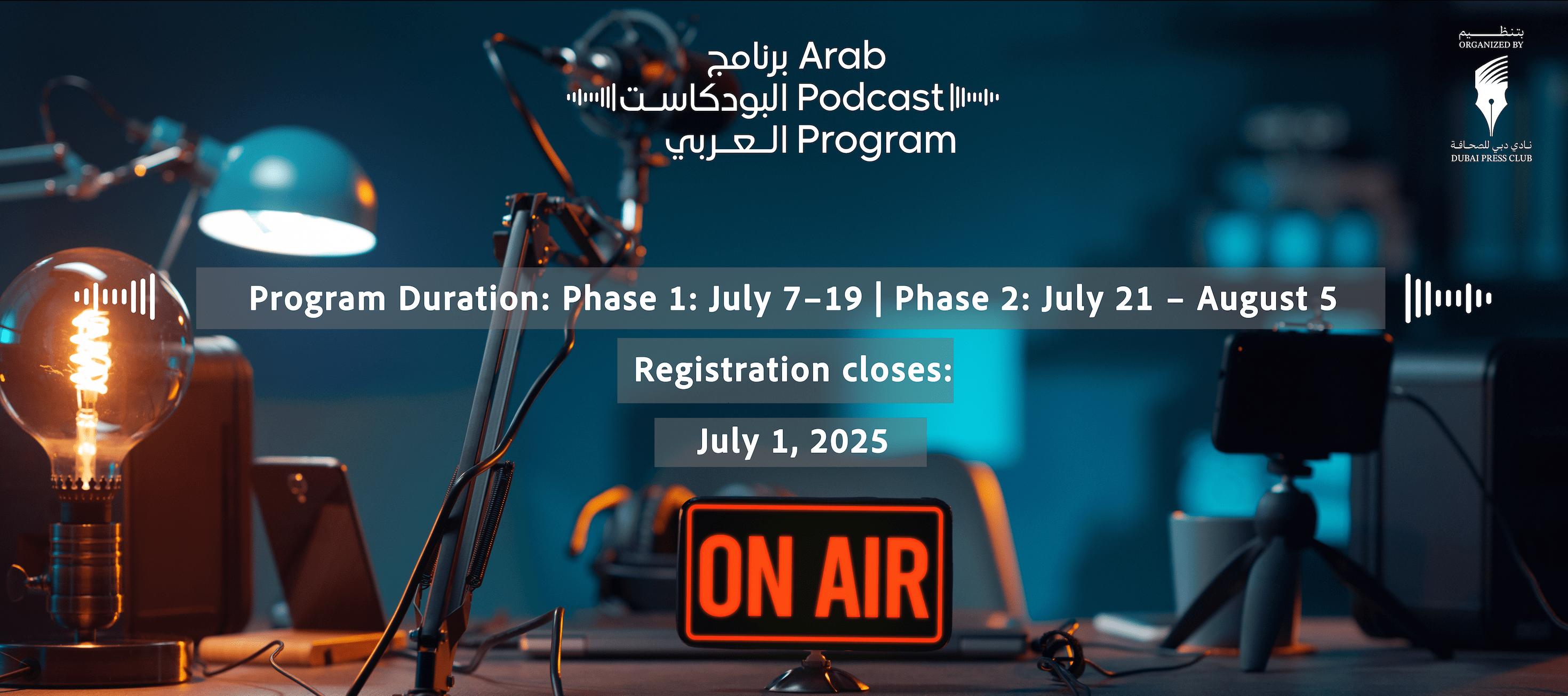 Launched by the Dubai Press Club, the Arab Podcast Program is a unique initiative designed to foster the growth of audio content creation and enhance the capabilities of content creators across the Arab world. The comprehensive Program aims to deliver a specialised and customised training comprising a series of constructively-aligned theoretical and practical courses and activities that are developed in collaboration with prominent regional and global leaders in the podcasting industry. The Program seeks to enable participants master the entire range of skills needed to conceive, create, launch and publicise podcasts, with particular emphasis on idea-generation, scriptwriting,, scriptwriting, podcast recording, editing and marketing. It also imparts essential skills in presentation and dialogue, enabling participants to create and deliver engaging audio content. In partnership with media organizations, podcasting platforms and media colleges, the Program gives participants the opportunity to put their newfound knowledge into practice and explore promising career opportunities in the industry. Serving as a dynamic platform for nurturing young Arab talent in audio content production, this initiative further strengthens Dubai's status as a hub for the region’s podcasting industry. The Program empowers young content creators to unlock their creative potential and launch their own podcasts, contributing to the growth of a vibrant podcasting community with a rich diversity of voices, perspectives and stories.